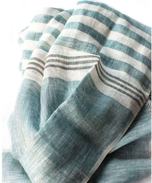 Hand Loomed Linen Scarf Sand Sea Blue Stripes