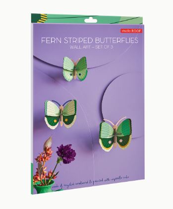Fern Striped Butterfly 3D Wall Art, Set of 3