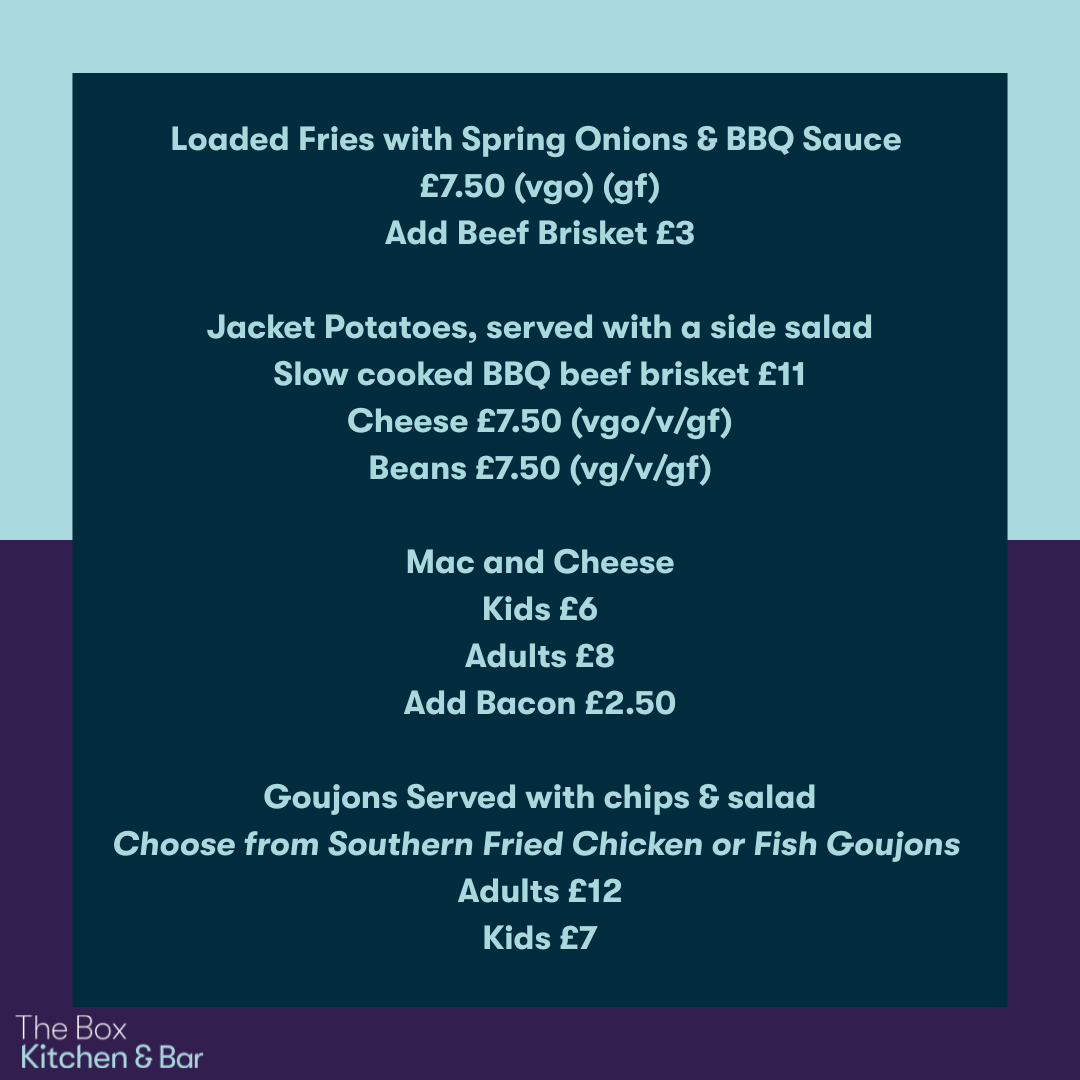 For those wanting a rest from the partying, The Box Kitchen & Bar be open throughout the evening with last food orders at 7.30pm.